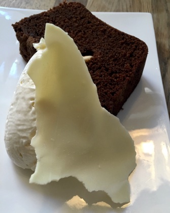 quite moist enough but that John liked just as it was. It paired well with a vanilla-flavored mascarpone cream and a slab of white chocolate.