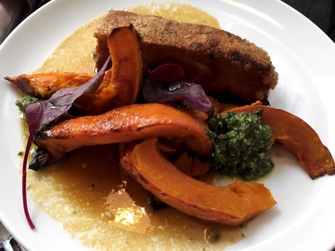 served with slices of pumpkin and a delicious pesto of coriander (worth trying at home).