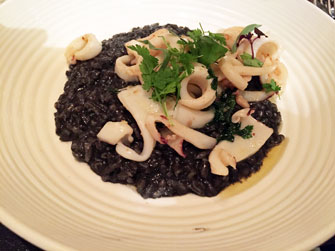 my richly satisfying squid-ink risotto topped with tender calamari.
