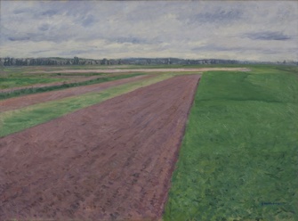While a number of these paintings can be classified as Impressionist, many others show a more modern bent that puts him among the forerunners of modernism, along with Degas and Manet. To prove the point, the curators have gathered three paintings showing similar scenes of open fields, The first, painted in 1883, is frankly Impressionist, and the second, painted the same year, a little less so, while the flat planes of color and stark composition of the third work, painted the following year,