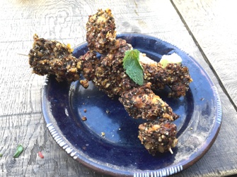 marinated in sugar and chili with a fantastic crunchy crust made of crushed popcorn, cornflakes, coriander and fresh mint.