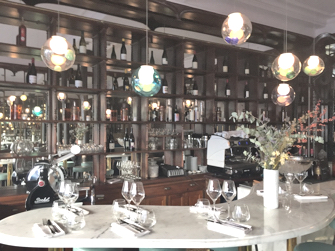 The festivities have already started, at least for me. The other day, I had lunch and dinner in two Paris bistros worthy of the name. The first, Jouvence, in the 12th arrondissement, is both very new and very old. It opened only recently but is located in the marvelous setting of a hundred-year-old apothecary with dark-wood and mirrored walls lined with shelves and cupboards. The mirrors reflect to infinity the pretty modern glass light fixtures hanging above a freestanding, S-shaped marble bar, nicely complementing the dark-wood backdrop. The royal-blue banquettes provide another lovely contrast.