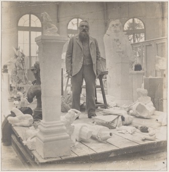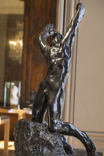 Rodin (1840-1917) lived and worked in the Hôtel Biron as of 1908, and one of those oval corner rooms helps to satisfy visitors’ curiosity about his life there with period furnishings and photos and objects that belonged to him: fragments of antique statues, paintings and other works, including a curious 19th-century bronze statue of the god of longevity from Japan. These pieces are interspersed with his own works, all displayed on crates or simple sculptors’ stands as shown in contemporary photos of his rooms. Rodin’s then-radical view was that stands should be as simple as possible, and the new wooden stands displaying his work throughout the museum are accordingly discreet. Modern in design, their wood matches the parquet.