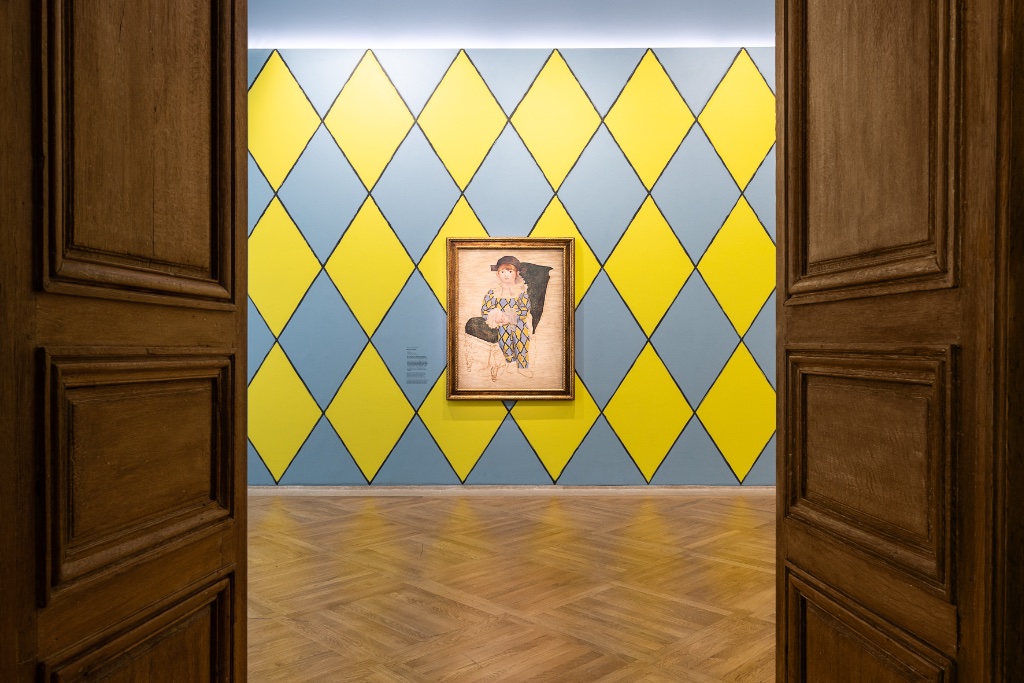 Some of these choices may seem obvious or clichéd – a bright pink room for the artist’s 1906 studies of the female body, for example, harlequin-patterned wallpaper for “Paul as Harlequin” (1924), mud-brown paint for the wartime paintings, and blood-red for the wonderful bullfighting works on paper – but it works beautifully to highlight various aspects of the paintings and create a fitting ambiance.
