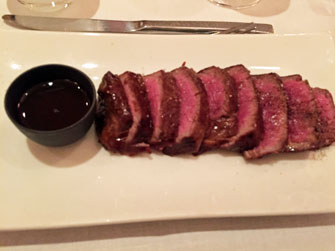 (thoughtfully placed on the side; the meat was so good that I preferred it on its own). My friend had the pluma Ibérico (pork end loin), which was also served sliced, with a crust of Japanese mountain pepper. Both were tender, perfectly cooked and delicious.