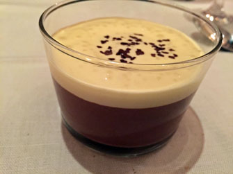 To end the meal, my companion chose the cheese platter, which included generous helpings of goat cheese from Saumur and a wonderful runny Epoisse. I had the chocolate cream made with dark Valrhona chocolate and