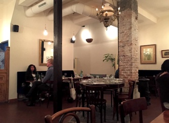 Now that I think of it, however, there were quite a few English-speakers and not so many French people seated in the rather barn-like back room of the restaurant and the corridor leading to it from the street-front bar area, so gloomy and empty that my dinner companion, who arrived early, circled the block several times before entering, thinking that the place was unpopulated.