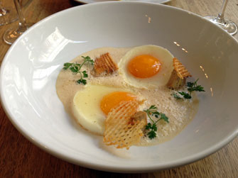 The second starter, fried eggs with foie gras and foamy sauce poulette, sounded interesting but wasn’t really: the ingredients were fresh and good, but there was very little foie gras,