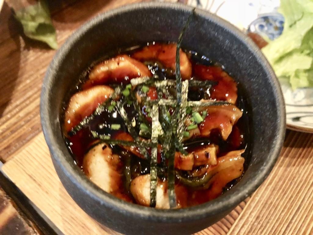 Update, November 27, 2024: A return visit proved that Abri Soba is still in excellent form, as demonstrated by the two small plates pictured below: perfectly cooked mackerel with mirin sauce and the breaded and grilled razor clams. We reordered the hay-smoked beef with eggplant that we had loved on previous visits and found it just as delicious. The service was prompt and friendly, the ambiance lively. A sure bet for a good meal and an enjoyable evening.
