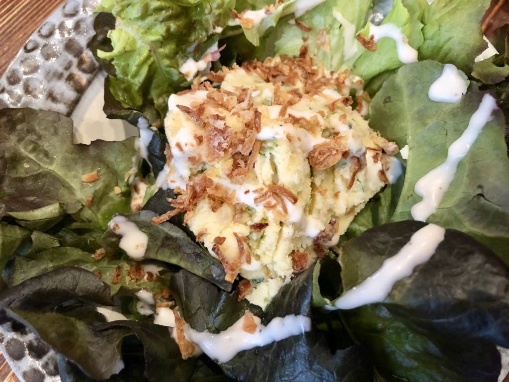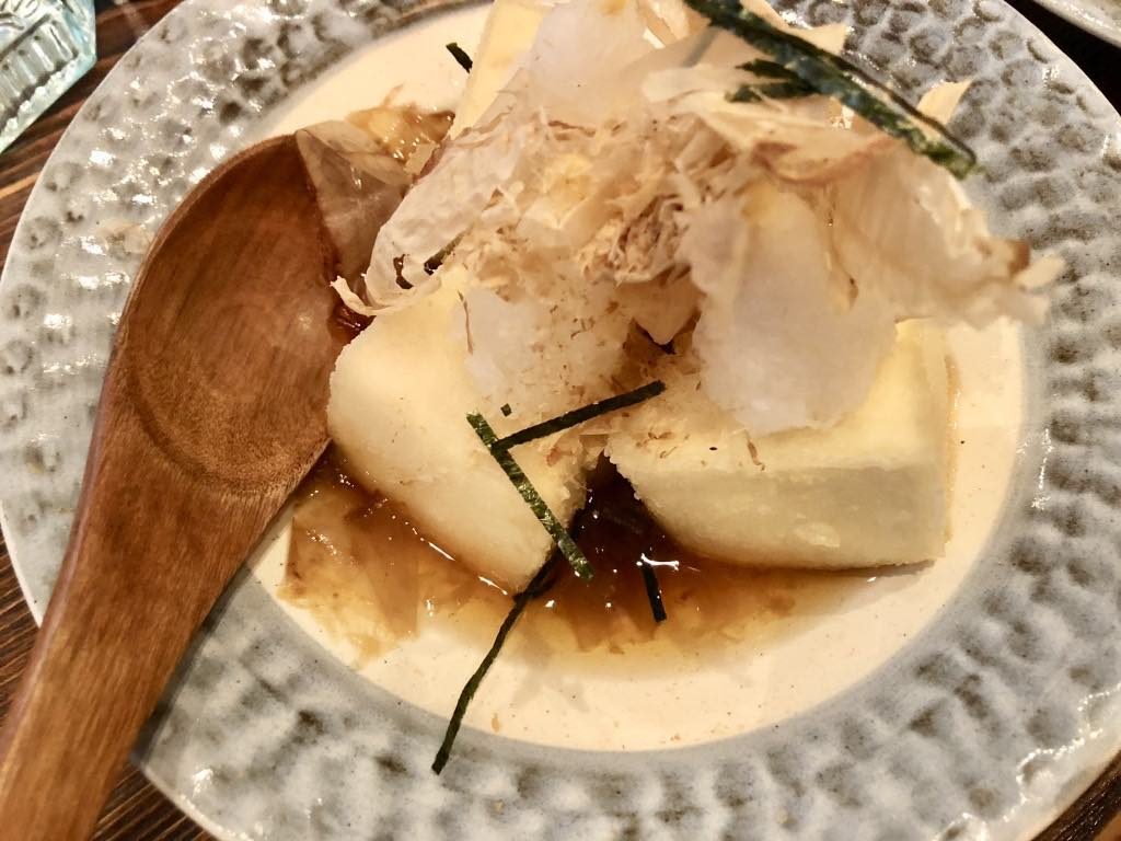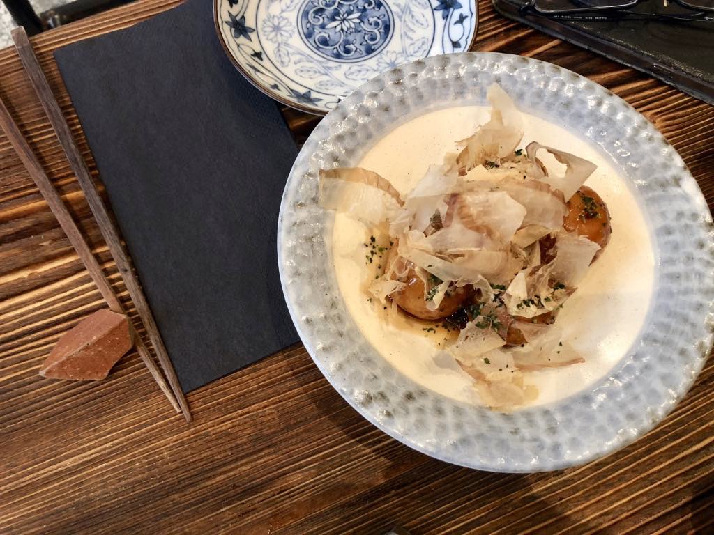 The first dish he chose from the long list of hot and cold tapas was the potato salad because he remembered that everyone in Japan started their meal with it. Dolled up with smoked white radishes and lardons, it was tasty but too similar to a potato salad I might make myself.