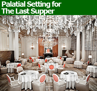 Interested readers can check out the palatial dining room on the Web: the beige color scheme doesn’t push my buttons but was untaxing on the eye. The seating is rather odd, being a combination of a traditional bergère-style chair-back and armrests, and a pouffe. There’s a neat, handy, pullout shelf for your Birkin bag midway down the pouffe component. The only really interesting decorative features were the traditional crystal chandeliers, which had been expanded by adding hundreds more crystals dangling from the ceiling around them. Reflected in the many mirrors, they twinkled beautifully throughout the meal.