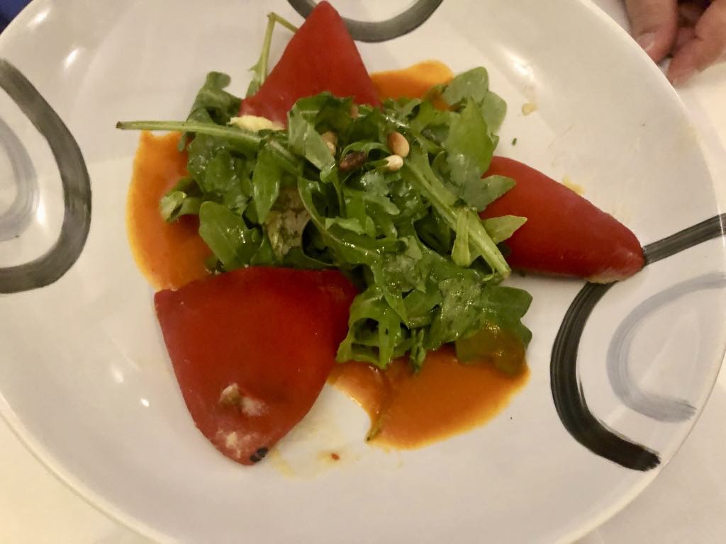 On the plate, it didn’t look like much, just a disk of meat sitting in a pool of a chocolatey-brown sauce. In fact, Dennis detected a chocolatey flavor, and the waiter confirmed that that was one of the ingredients in the sauce. We think the slightly sweetish taste came from another ingredient: cinnamon.