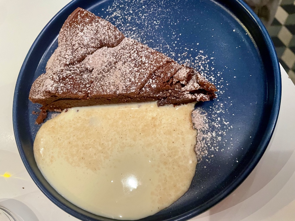 The torta tenerina, a moist chocolate cake, was another excellent version of a classic, served with crème anglaise (custard).