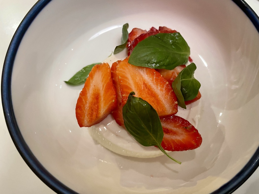 We tried both desserts. My panna cotta, which might be boring elsewhere, was an outstanding example of this classic dessert, rich and creamy, and topped with strawberries and fresh basil.