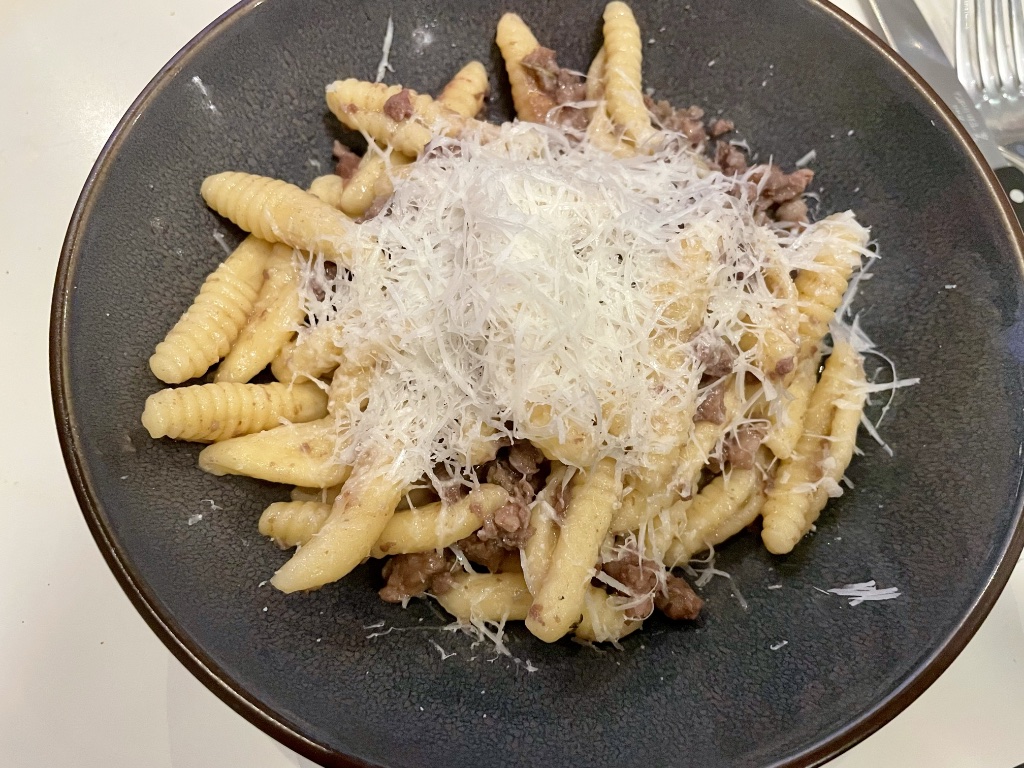 The wonderful, slightly spicy organic 2019 Friuli Colli Orientali, Cabernet Franc recommended by our friendly sommelier was just the right accompaniment for the pasta with ragu.