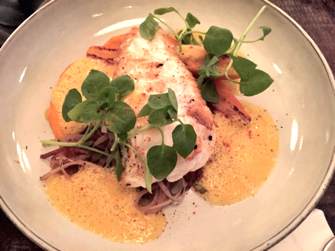 Linda was delighted with her lotte (monkfish), which she summed up beautifully in the notes she had made on her own dishes as “firm, resilient monkfish served with carrots in three guises: roasted, julienned and pureed, with just a hint of spicy heat.”