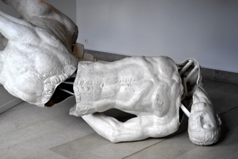 copy in plastic of a monumental work of the same name by Bourdelle, with a big difference. From time to time, this robotized version comes to life, and the half-man, half-horse unfolds and collapses to the ground, no longer dying but dead.