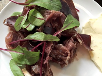 jazzed up with salt and pepper. Still, the addition of pieces of hazelnut was a nice touch. John had a generous plate of tasty jambon