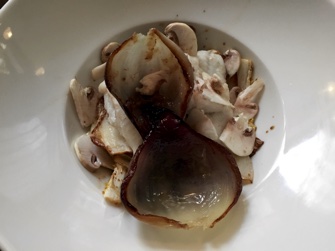merlan (whiting) which sat atop a bed of bok choy cooked in soy sauce. John’s pork belly, tender and juicy, with just-right crackling, was