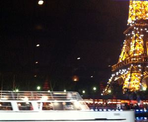 Having never before tried one of those dinner boats plying the Seine, I recently tested the new menu created by chef Martial Enguehard (Meilleur Ouvrier de France, formerly of Lucas Carton and the Crillon) for the Capitaine Fracasse. The food was fine, if not a gourmet feast. We began with an assortment of (straight from the refrigerator) mini-starters: foie gras, a goat-cheese-and-cucumber sandwich, fish tartare, a mayonnaisy apple salad and a sweet/peppery vegetable soup. For the main course (the only one you get to choose), I had a deconstructed blanquette de veau, with the veal and rice wrapped in cabbage like a big sushi, served with a tasty mushroom-flavored white sauce and carrots. My companion proclaimed his filet of beef (+€10) with foie-gras sauce and purple mashed potatoes to be delicious. Dessert was also an assortment, with a bite of chocolate cake, a little fruit tart (topped with tiny malted-milk beads) and creamy cheesecake in a bowl. The service is friendly and efficient, and the interior plain, but who needs decor when the show takes place outside the windows as you glide past all the glories of Paris, from the Eiffel Tower to Notre Dame and back, ending with a familiar but out-of-place sight: the scaled-down Statue of Liberty on the Ile des Cygnes. Prices range from €50 (drinks not included) to €89 for the whole works and a bottle of 2006 Grand Cru Classé Haut Médoc. On the whole, a supremely relaxing way to spend an evening.