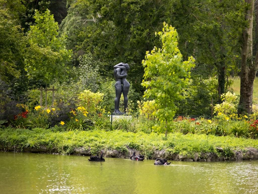 The statues are displayed along a promenade surrounding a pond inhabited by families of black swans and ducks. It’s an idyllic place to sit and listen to the songbirds, the gentle little squawks of the swans and the quacking of the ducks while thinking thoughts of love inspired by the statues, which evoke the relations between couples, siblings, and mothers and children.