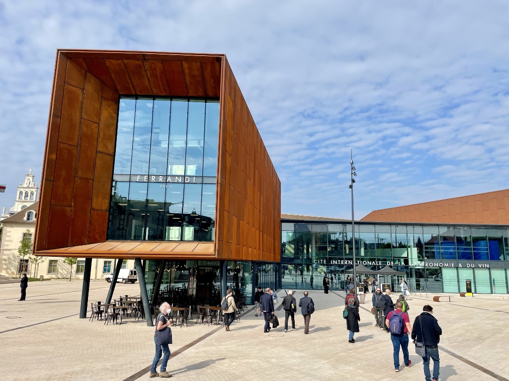 The sprawling 16-acre complex is set on the site of the city’s former general hospital, originally founded in 1204 by Eudes III, Duke of Burgundy, and incorporates some of the buildings dating from the 15th to 18th centuries, but on arrival, visitors are greeted by a starkly modern building, designed by Anthony Bechu and Alain-Charles Perrot, with a rust-colored cantilevered wing jutting out rather aggressively. It houses the international program of the Paris-based Ferrandi cooking school, which has produced many a great chef over its hundred-year history.