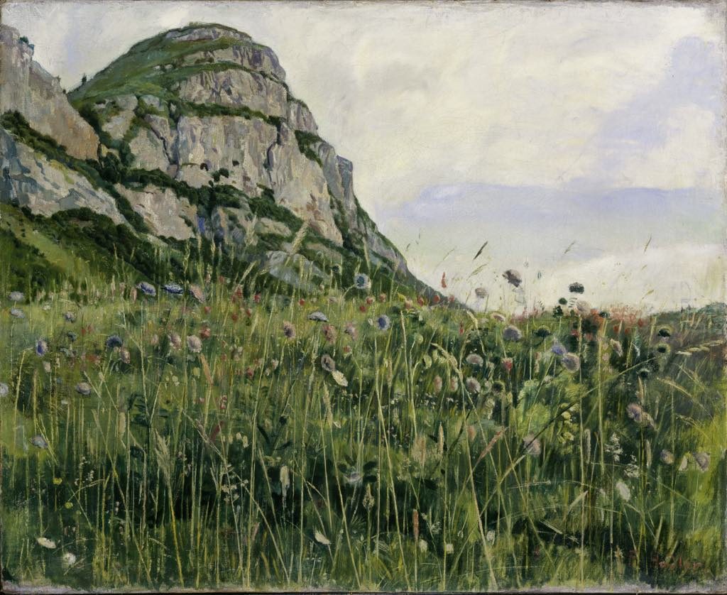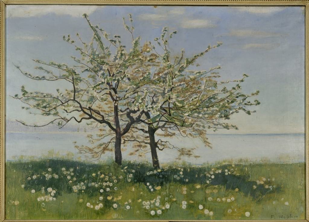 Highlights of works by Hodler include “Frühlingswiese am Salève” (Spring Prairie at the Foot of Mont Salève) (1888), a lovely landscape, and the delicate “Apple Trees alongside Lake Geneva” (c. 1893), both from private collections, as are many of the other works on show here. The latter is an example of how Hodler introduced the symmetry and rhythm of “parallelism” into his works,