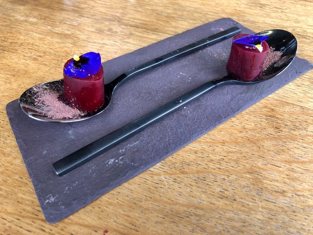 The meal started with three attractively presented amuse-bouches respectively made with beets, cauliflower and cheddar cheese. The cheese logs were the most flavorful of the lot.