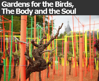A psychedelic vineyard by artists Anne and Patrick Poirier at the International Festival of Gardens in Chaumont sur Loire. |