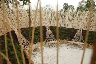 “Homage to Lady Day” by Strootman Landschapsarchitecten of the Netherlands pays tribute to another dear departed personality: Billie Holiday. Visitors can sit on sofas while listening to her recording of “Body and Soul” and contemplating a grand piano planted in the middle of a field of flowers. (We were assured that the piano was on its last legs anyway and that “no pianos had been harmed in the making of this garden.”)