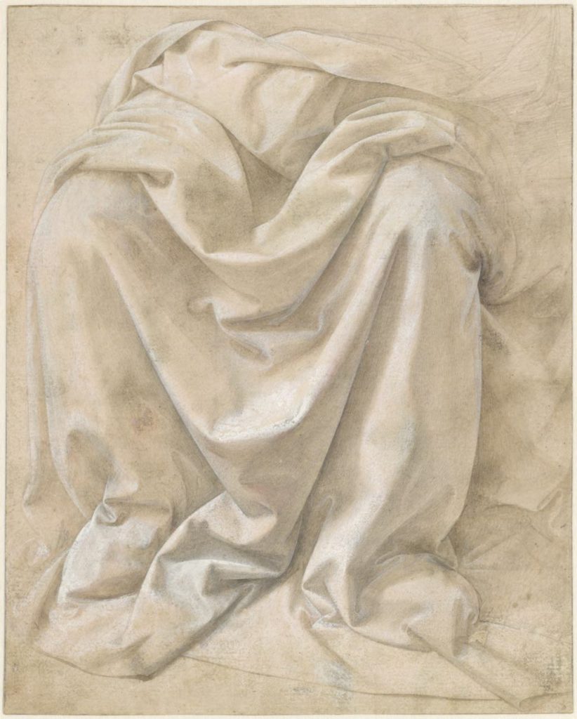 The last section, on the study of light, includes numerous sensitive portraits and studies, including the lovely head of a young woman by Andrea del Sarto, probably depicting his wife Lucrezia de Fede, and a stunning study of drapery-covered legs by Lorenzo di Credi.