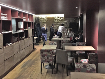 The staff here is friendly and relaxed yet efficient and helpful. A special mention for the Australian sommelière, who has chosen some highly interesting wines, including an “orange” wine (made from white grapes macerated with the grape skins) from Italy (Umbria Reggio 2014, Cantina Margo) that was like nothing else I had ever tasted: earthy but crisp, with a hint of smokiness. We also loved the bottle of Anjou we shared.