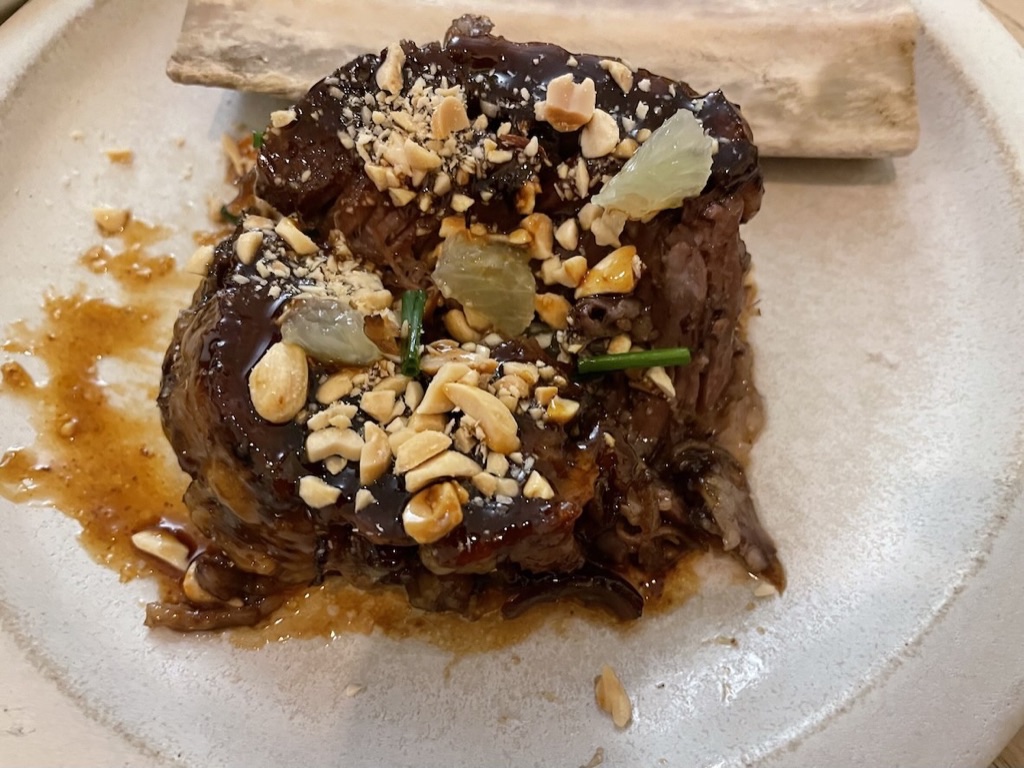 For a little meat protein, we shared the glazed beef ribs with lime and peanuts. For easy eating, the meat had been removed from the bone, which was presented naked on the side of the plate. The lime was the perfect complement to this rich, flavorful dish, while the peanuts added a welcome touch of crunchiness.