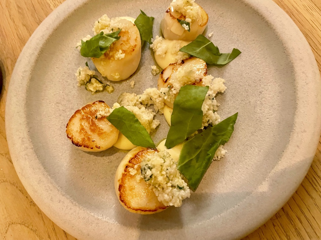 We then shared the scallops cooked a la plancha and served with sorrel leaves, which added a nice acidic touch, and a rather bland cauliflower condiment. They were very tasty but not as brilliant as the blowtorched scallops we recently had at Coda in Paris.