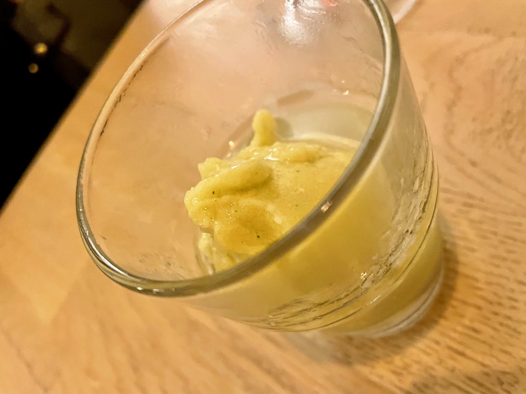 My friend, meanwhile, was joyfully relishing the more slimming “colonel du chef, mi-dessert, mi-digestif,” mint and lemon sorbet doused with iced vodka.