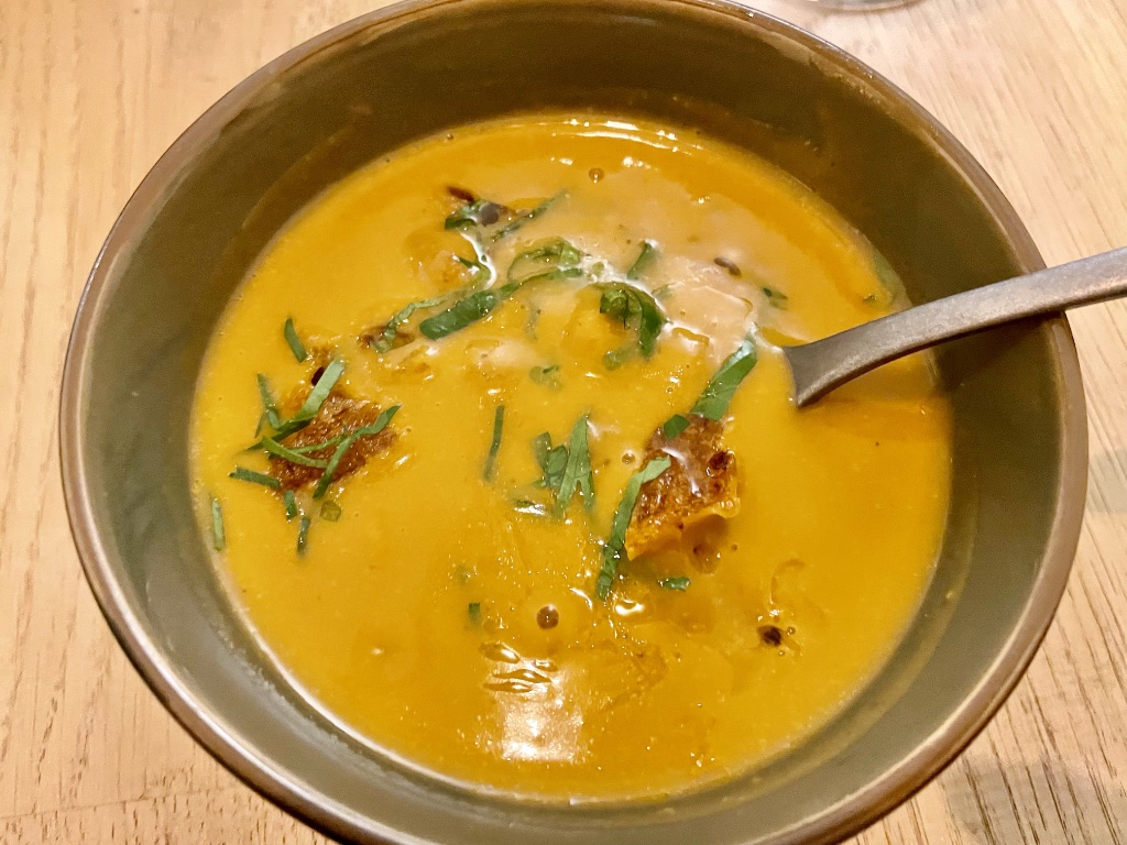 For dessert, I had the luscious brioche perdue, a fancy version of French toast, made with brioche, sweetened red-kuri-squash purée and sesame nougatine.