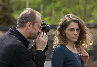 Antoine becomes obsessed with his piano-playing neighbor, Elena (Ariane Labed), an ethereal beauty, and begins surreptitiously taking pictures of her through the window. Following her with his camera, he photographs what appears to be a suicide attempt but may be an accident. He visits her in the hospital and gradually worms his way into her life despite her initial resistance. Antoine, Elena and Matéo become a happy threesome for a while, until she discovers he has been stalking her with his camera.