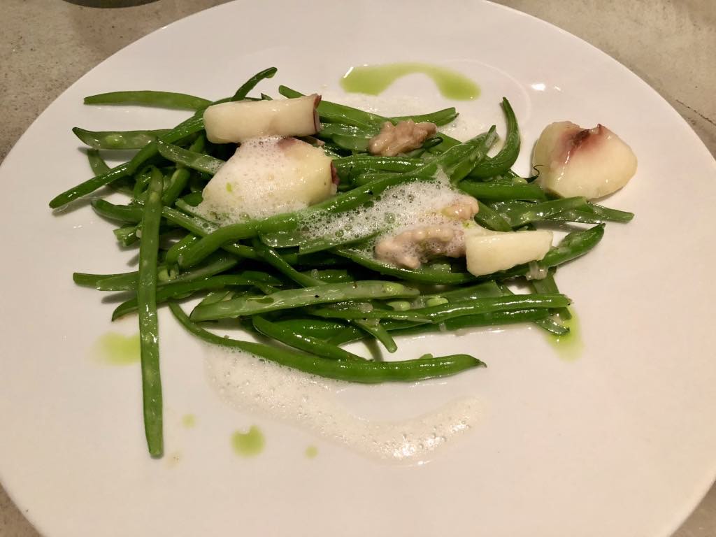 Both starters were stunners. The fresh, crisp green beans were dolled up with white peaches, fresh walnuts and mint emulsion.