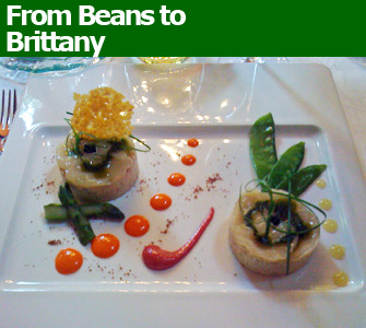 A four-decker starter of mercifully reasonable portions of foie gras, veal sweetbreads, abalone with a concentrated reduction of tomato and red pepper, and a white fish with fresh white beans was placed before my companion, and a concoction of the freshest-tasting fresh crab and the thinnest slivers of raw scallops in front of me. The presentation of the dishes was, as befits, faultless, and we definitely felt like better people after downing them.
