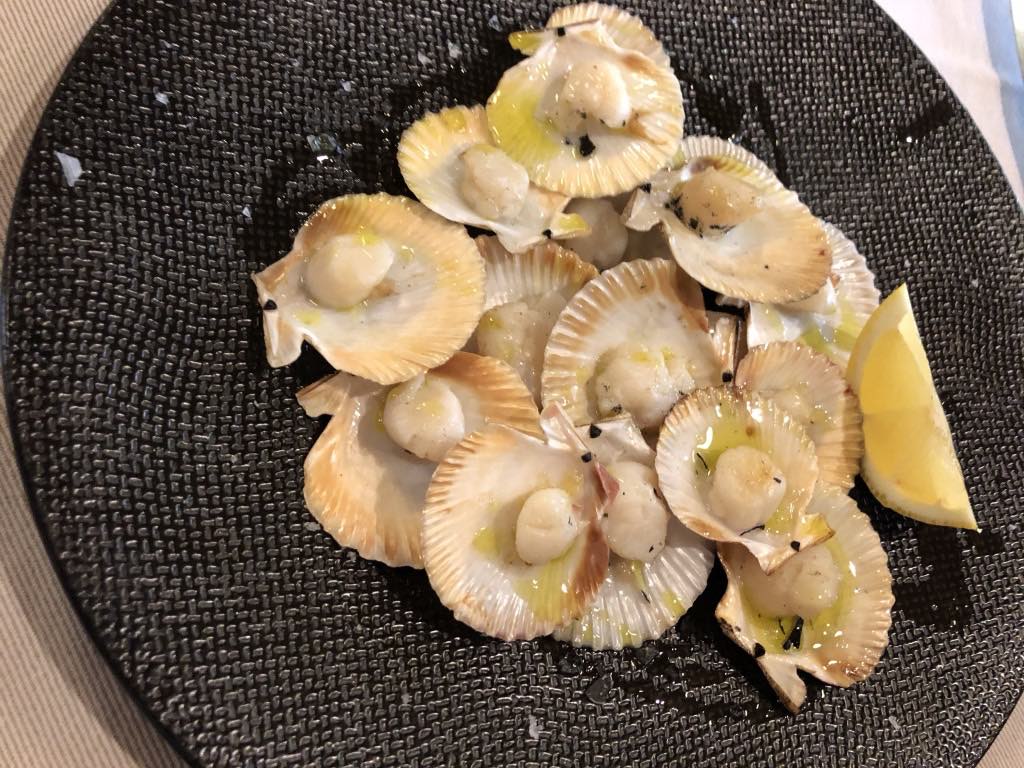 The first courses were encouraging. My two friends had pétoncles (tiny scallops) on the shell, which had a lovely grilled flavor and were cooked just right.