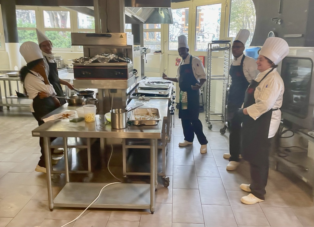The students seemed to be enjoying themselves as they prepared lunch in the open kitchen, watched over by two of their teachers, chefs Christophe Didelot and Guy Lambert, but a couple of friendly apprentices were on server duty that day (the students rotate roles so they can understand how every part of a restaurant works). They came from a variety of backgrounds, from tailor to odd jobber, caregiver and digital communications manager. Several of them have hopes of founding a restaurant or catering service after graduation.