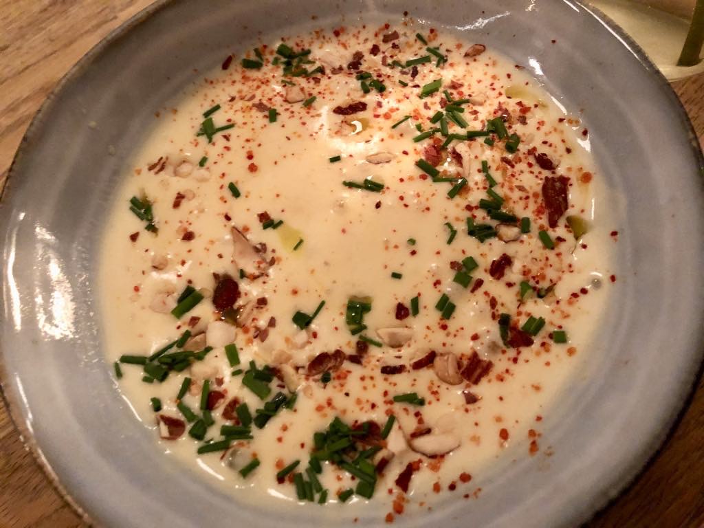 Another dish we tried was potato foam with cancoillotte (a runny French cheese) and smoked almonds. I didn’t really take to this one, but my friends loved it.