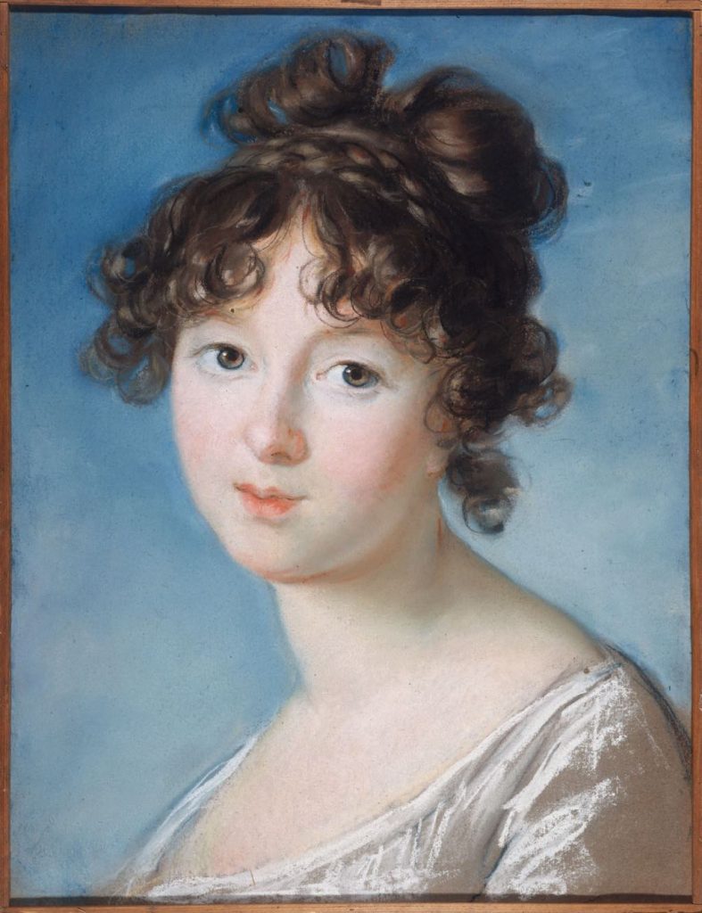 Pastels were often used for preparatory sketches for larger works. Elisabeth Vigée-Lebrun, the renowned portraitist of royals and aristocrats, used them throughout her career for this purpose, and we have one lovely and accomplished example here in “La Princesse Radziwill” (1801).