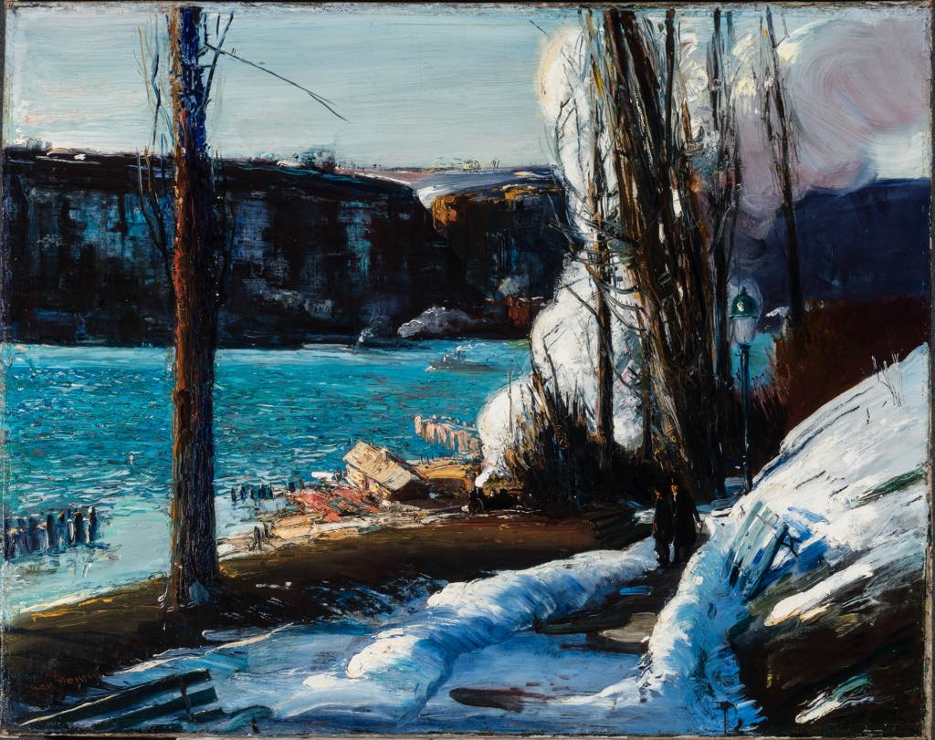 George Bellows’s “The Palisades” (1909), a view of the Hudson River, is striking for its powerful colors and brushstrokes, a harbinger of modernity.