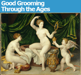 Everyone knows that the Romans were bath-crazy and built elaborate public baths (the Cluny exhibition takes place in the building’s magnificent, just-restored frigidarium, with its high, vaulted ceiling), but who knew that they used what we usually think of as modern inventions, such as deodorants (made of alum and honey), moisturizers, skin whiteners, breath sweeteners and wrinkle creams. In the Middle Ages, women bleached their hair (blonds had more fun even then) and used hairpieces to create elaborate hairstyles that changed frequently with the fashions of the day.