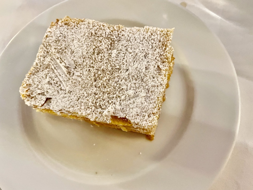 The rest of us shared a few perfectly made millefeuilles with a slight difference: the addition of a touch of wild pepper, just enough to make the classic puff pastry and custard dessert even more interesting.