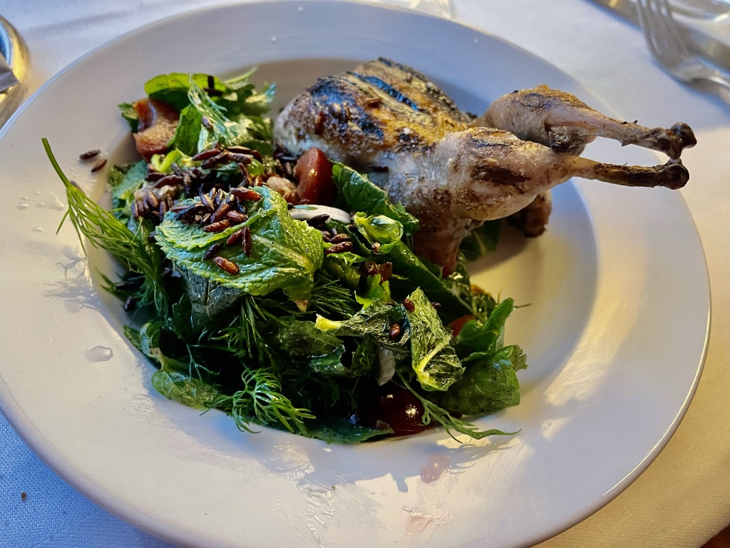 The caille (quail) with a salad of cherries, red rice, chestnuts and fresh herbs (lots of dill) was another of the delightful main courses.