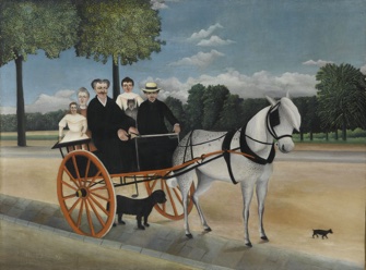 The problem with the paintings is twofold. First, the whole transmission argument rests on a fallacy; crudely put, it goes “Carlo Cenna painted a family in a horse-drawn buggy in 1882; Rousseau painted a family in a horse-drawn buggy in 1908; Carlo Carra painted a man driving a horse-drawn buggy in 1916; so Rousseau was the link between 19th-century Romantic Primitivism and 20th-century Futurism.”