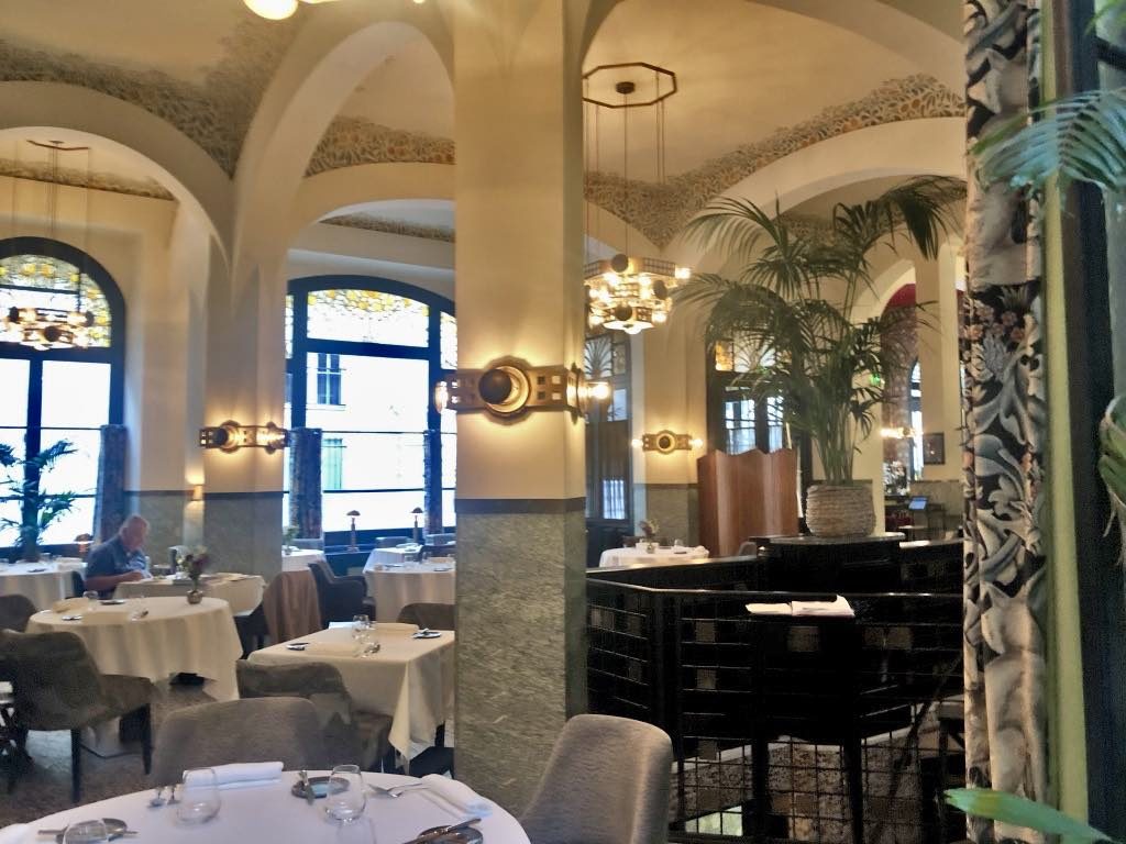 The next time someone asks me to recommend a restaurant for a special occasion, I will have one on the tip of my tongue: Les Climats. This beautiful space with a handsome Art Nouveau decor – complete with high arched ceilings, stained glass, palm trees, a winter garden and even that rarity in Paris, a real garden, where lunch is served when the climate allows – used to be the canteen for La Maison des Dames des Postes, Télégraphes et Téléphones, built in 1905, where over a hundred single ladies who worked for the PTT were housed in – a luxury! – heated rooms. It’s impossible to imagine such deluxe accommodations being built for government employees anywhere today, so let’s be thankful that this one was preserved.