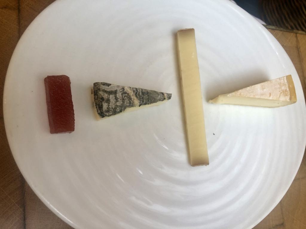 We shared the fine cheese plate with quince paste and the dessert of the day: roasted winter squash paired with fresh mandarin oranges on a cake-like base with caramelized hazelnuts. The weird-ingredients-in-dessert trend, which I had thought was over, is still with us but seems to be handled better now (several years ago, I was actually served a chocolate dessert with anchovies in it). The squash was sweet enough to blend in well, but I’m still not in favor of the practice.